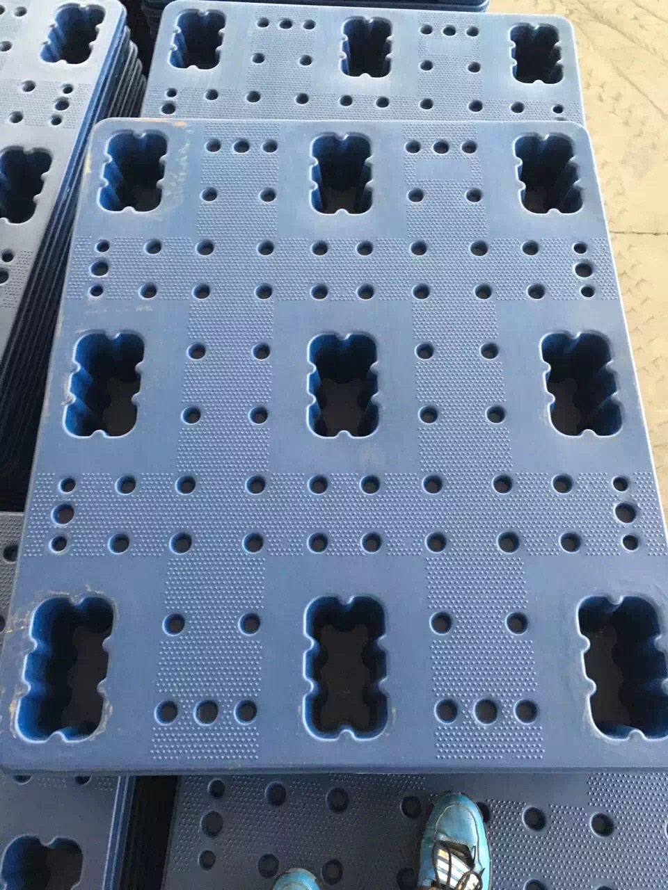 5、白色的九腳網(wǎng)格托盤其資料請求更嚴(yán),因?yàn)閾接衅渌Y料的九腳網(wǎng)格托盤是做不出白色或半透明商品的。不過通常場合咱們更多的運(yùn)用藍(lán)色(天蘭色)的九腳網(wǎng)格托盤。